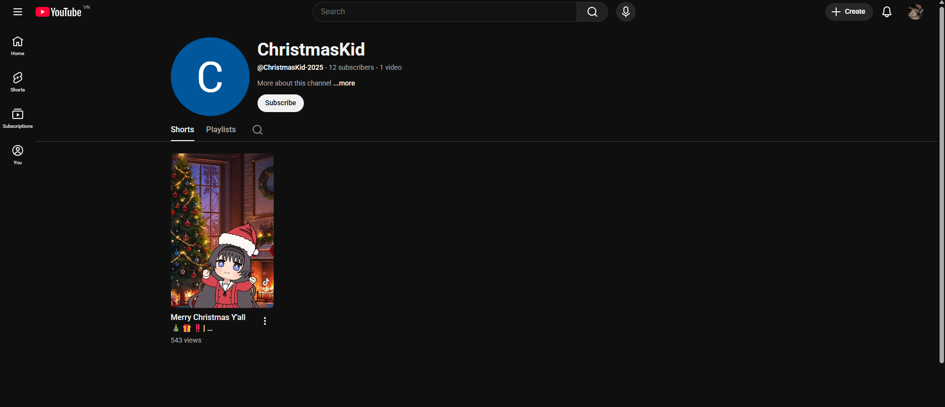 Thấy có một accout YouTube có id là @ChristmasKid-2025