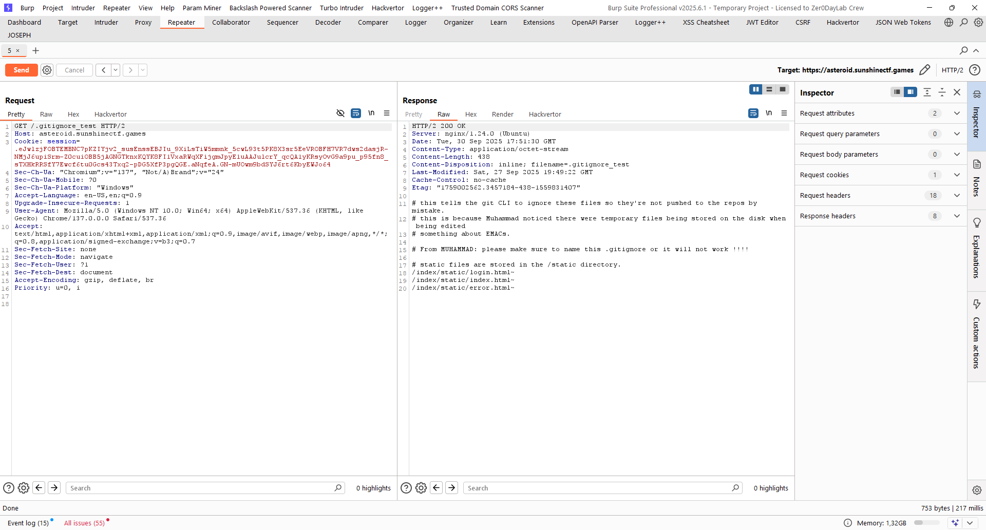 Nhận thấy nó để lộ ra 4 URL là /.gitignore_test, /login, /admin/dashboard, /2FA