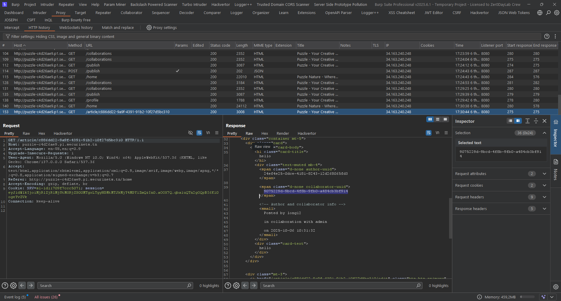 Gửi request này đến Repeater và chuyển method thành POST đồng thời chuyển URL thành /collab/accept/${uuid}