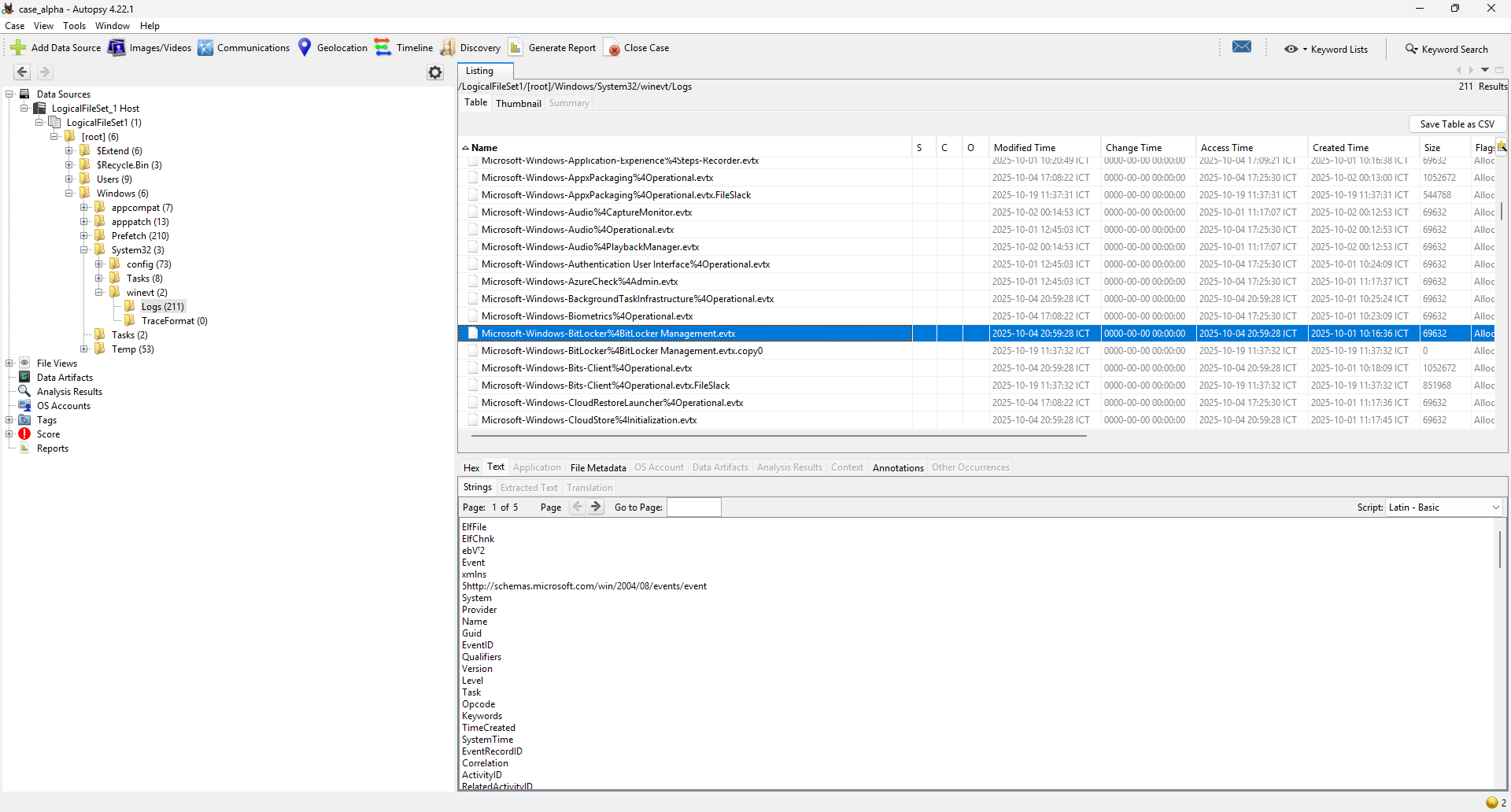 forensics_case-alpha-fin-000002.vmdk:Basic data partition (3) [60790MB]:NONAME [NTFS]|[root]|Windows|System32|winevt|*(Wildcard,Consider Case,Include Subdirectories)
