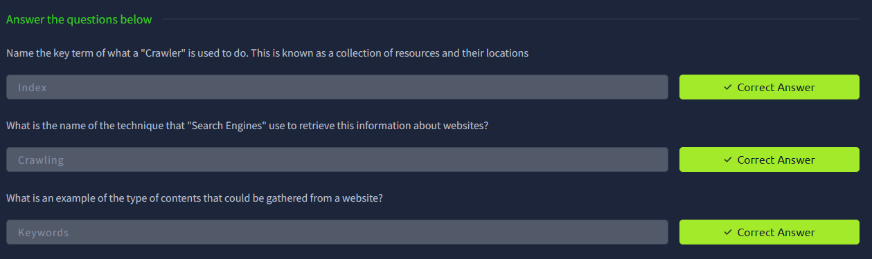 Công cụ tìm kiếm “lười” mà! Nói đúng hơn - chúng có quá nhiều dữ liệu phải xử lý. Tính hiệu quả của cách thu thập dữ liệu là tối quan trọng. Những tài nguyên như “Sitemaps” cực kỳ hữu ích cho “Crawlers” vì các tuyến đường cần thiết tới nội dung đã có sẵn! Tất cả những gì crawler phải làm là thu thập nội dung đó - thay vì phải tự tay tìm và thu thập. Hãy nghĩ nó như việc dùng wordlist để tìm tệp thay vì đoán tên ngẫu nhiên!