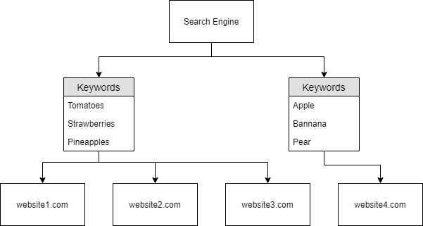 Giờ công cụ tìm kiếm đã có một chút kiến thức về từ khóa, giả sử người dùng tìm “Pears” thì miền “mywebsite.com” sẽ được hiển thị - vì đó là miền duy nhất đã được crawl có chứa “Pears”.