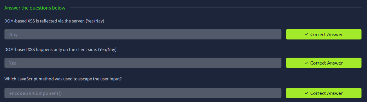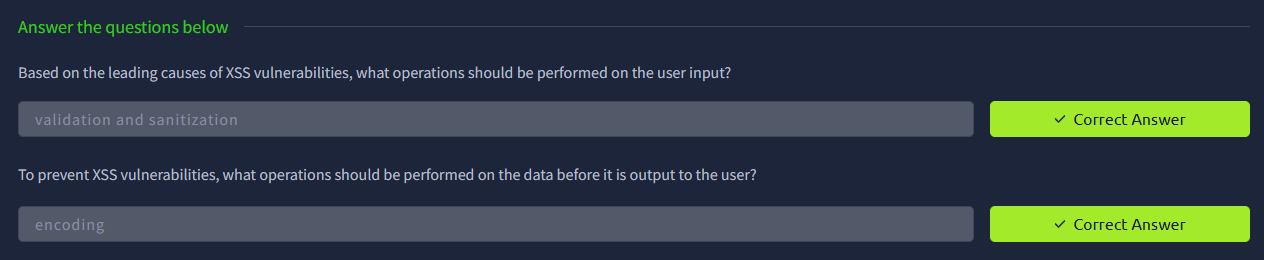 Mục tiêu của phòng này là giúp bạn hiểu sâu hơn về cơ chế hoạt động nền tảng của các script XSS. Chúng tôi đã trình bày các nguyên nhân và nhiều biện pháp khắc phục cho XSS. Hiểu những gì diễn ra “hậu trường” sẽ cho bạn lợi thế khi khám phá các khai thác hiện có và điều chỉnh chúng phù hợp với nhu cầu của mình.