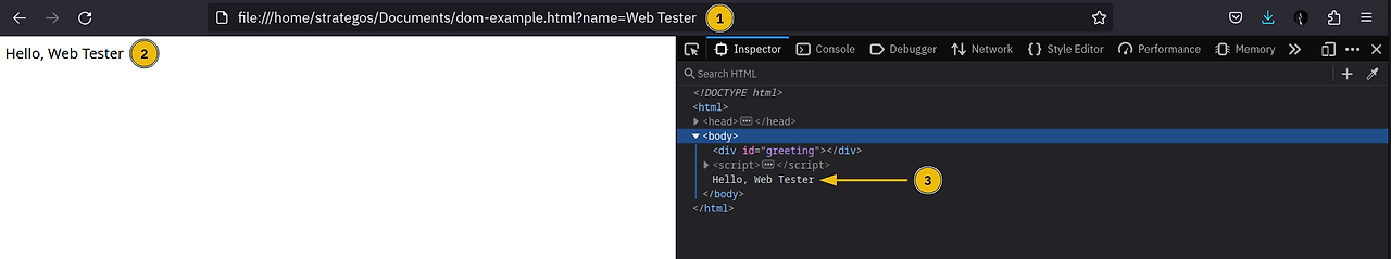 (Một trình duyệt với tab Inspector hiển thị cấu trúc DOM đã bị thao túng của site tĩnh ví dụ.)